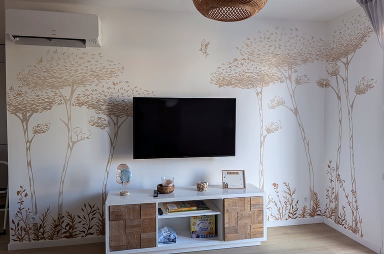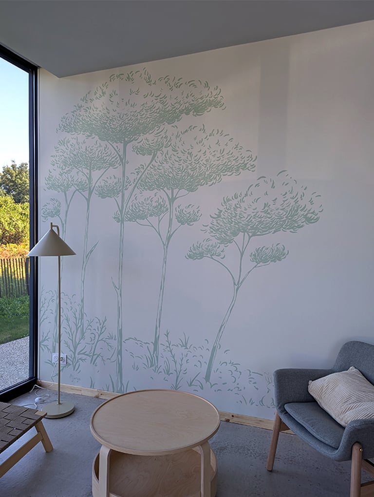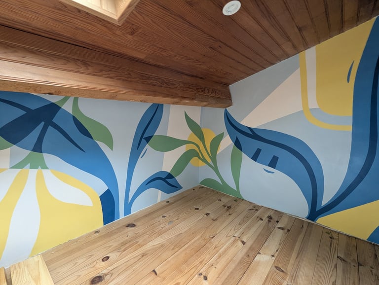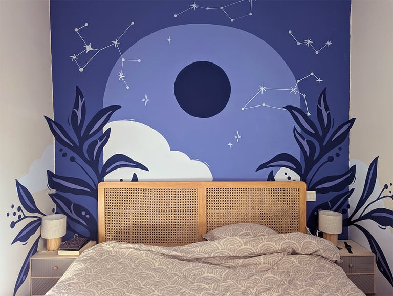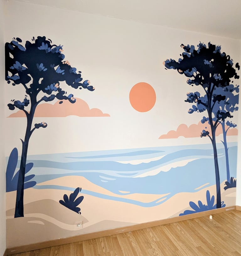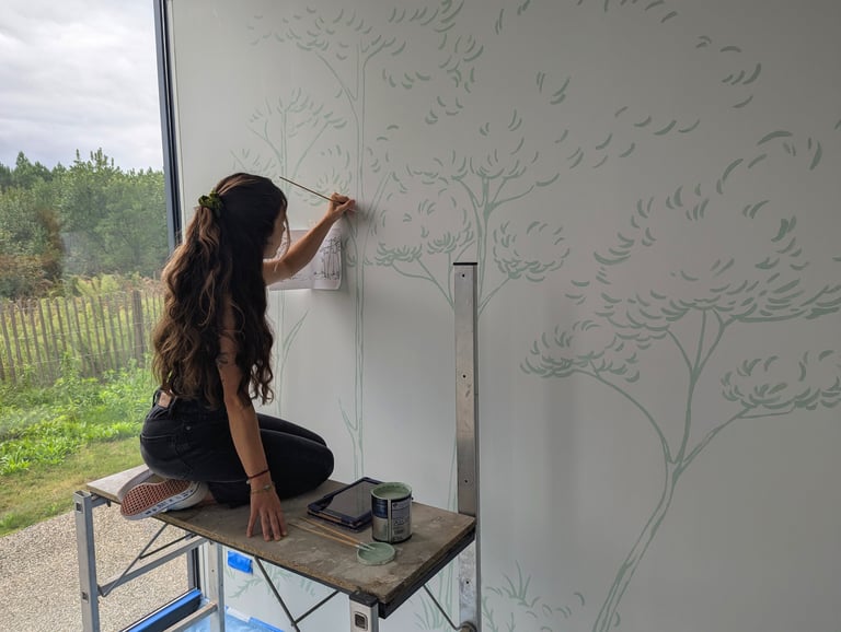 J'interviens chez vous pour réaliser la fresque. Il y aura un délai d'une à deux semaines minimum après la signature du devis, le temps pour moi de finaliser le dessin et d'acheter les peintures nécessaires.